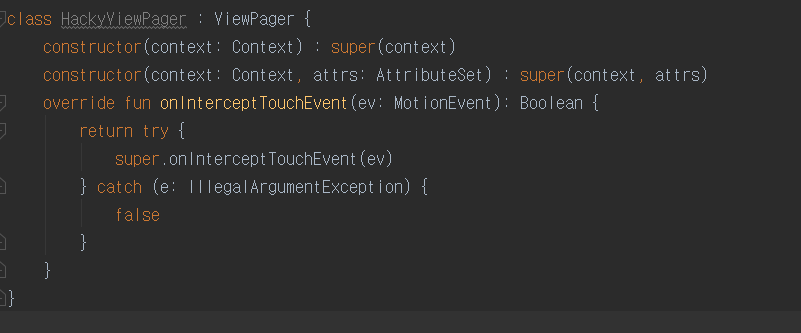 HackyViewPager를 복사하고 변환해준다. 그것은 아래와 같다.