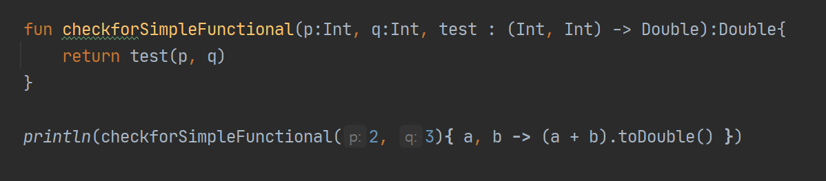 fun checkforSimpleFunctional(p:Int, q:Int, test : (Int, Int) -> Double):Double{