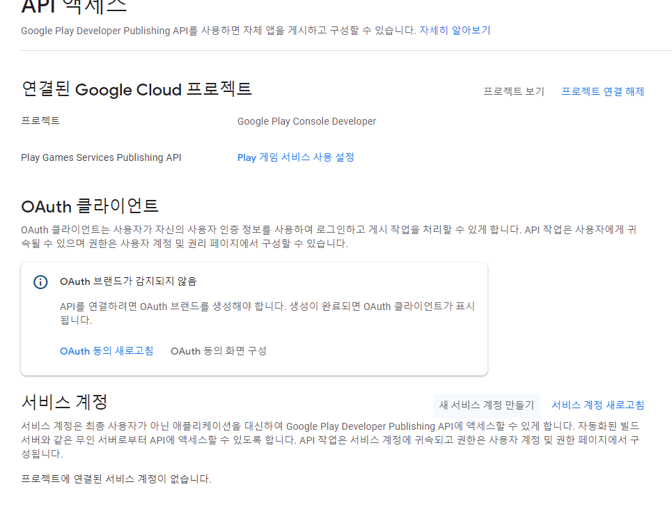 구글 플레이콘솔에서 아래의 액세스 권한을 얻자