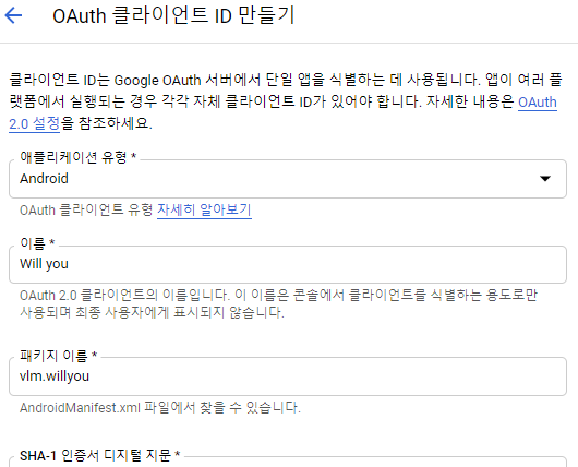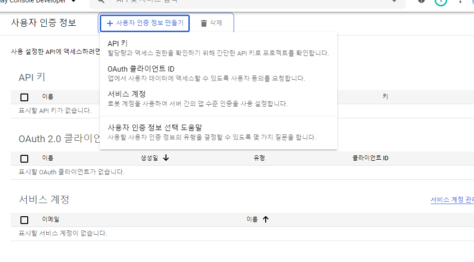 OAuth 클라이언트 ID를 만든다