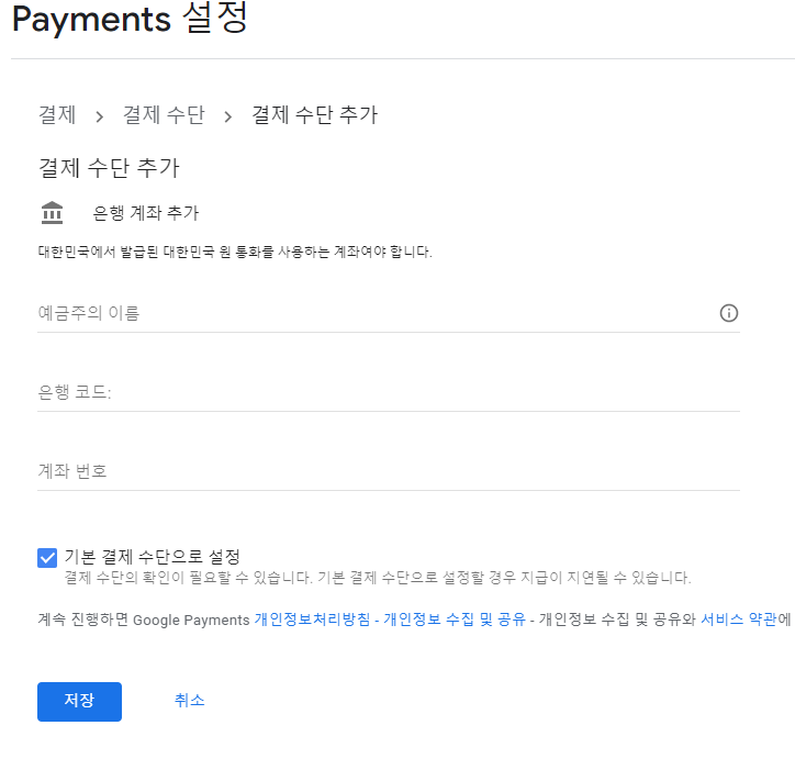3. 지불방법 설정