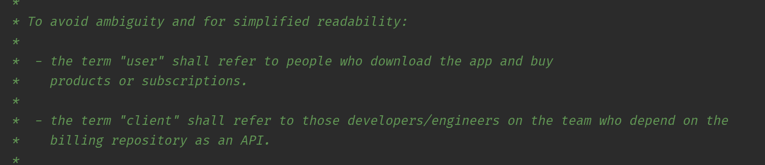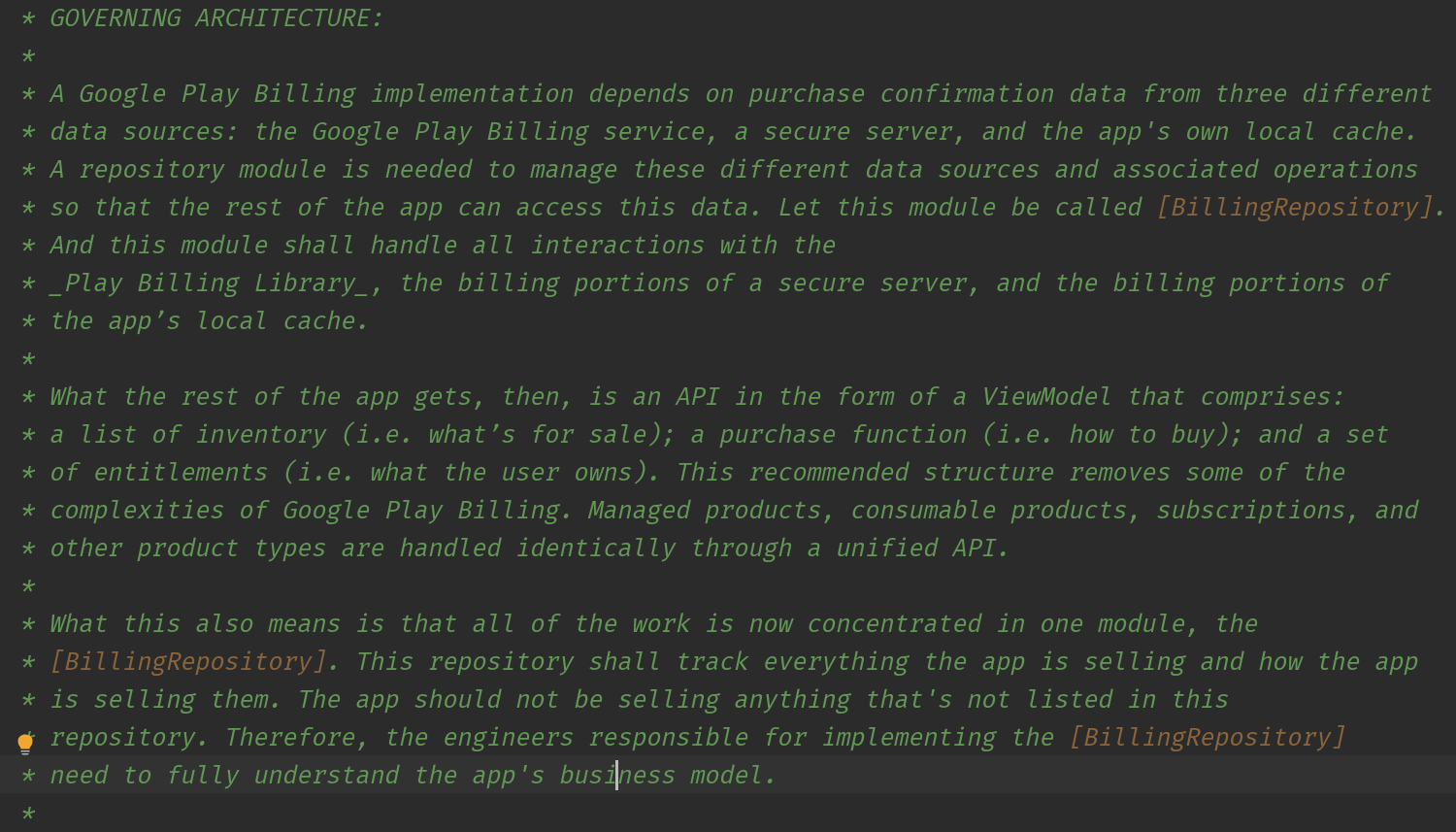 따라서 [BillingRepository] 구현을 담당하는 엔지니어는 앱의 비즈니스 모델을 완전히 이해해야 합니다.