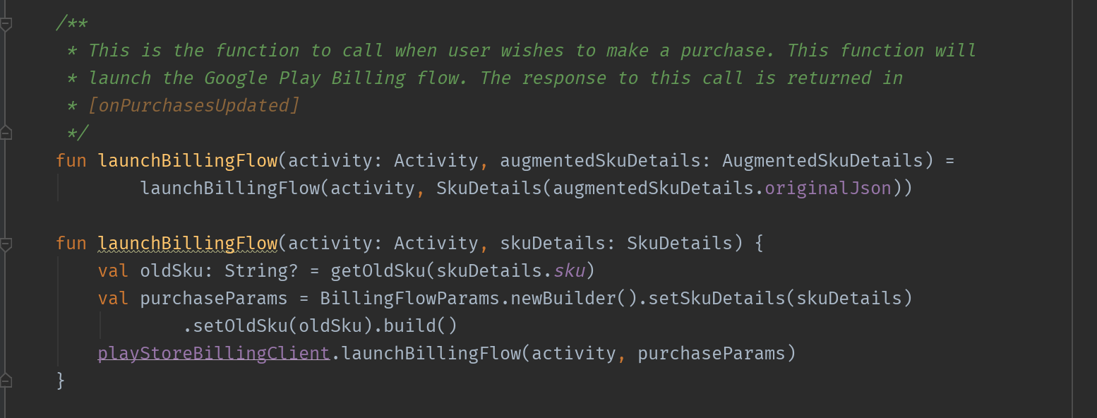 이 함수는 Google Play 결제 흐름을 시작합니다.