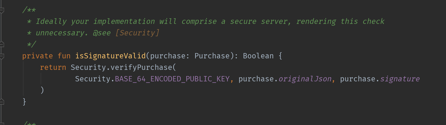 그러나 [3] 구현은 아직 서버 구성 요소가 없고 Google Play 결제 용으로만 생성하지 않으려는 앱에 대해 제공됩니다.