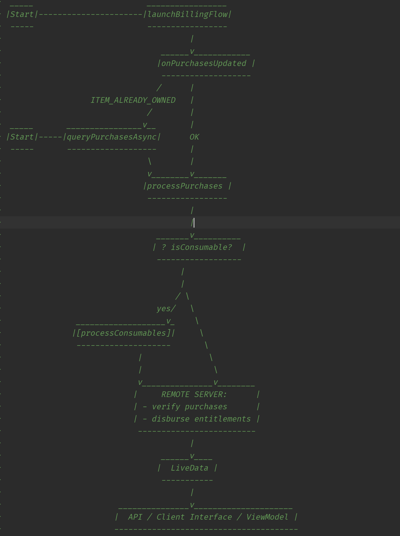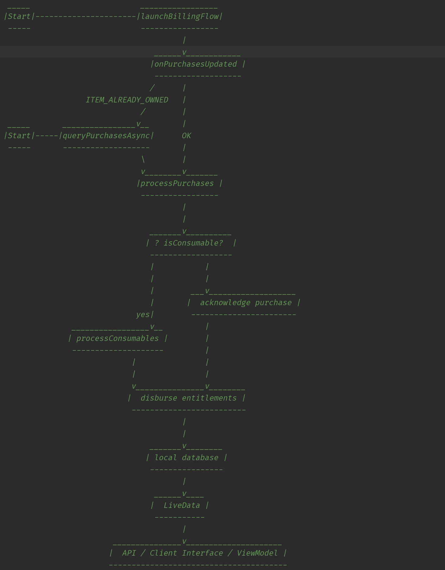 [queryPurchasesAsync]는 앱이 시작될 때 pull-to-refresh 또는 [Activity] 수명주기 이벤트에 의해 트리거 될 수 있습니다. 따라서 그들은 프로세스의 시작점입니다.