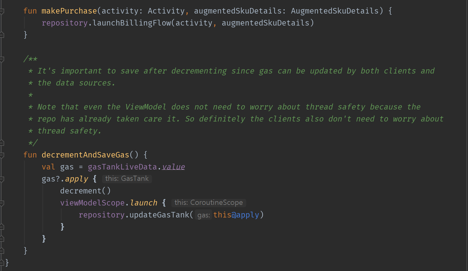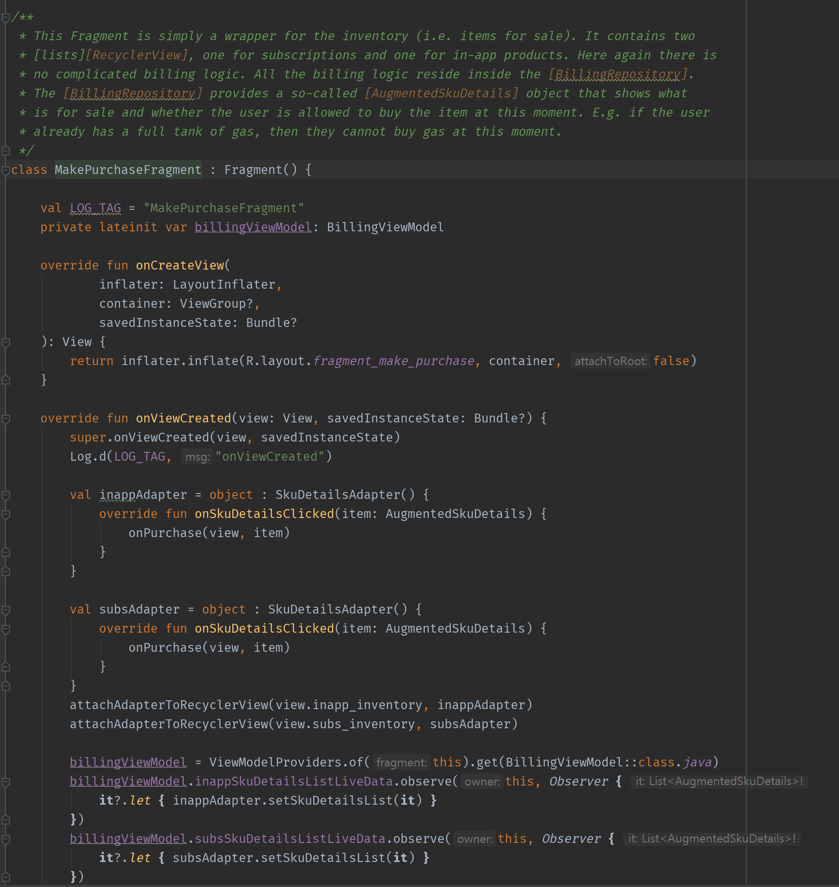 그리고 이 [BillingViewModel]은 나머지 Android 팀이 결제에 대해 알아야 할 유일한 개체입니다.
