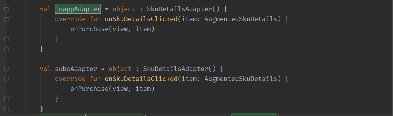 1> 구매를 위한 SkuDetail 어뎁터를 생성하고 Click 이벤트를 오버라이드하여 정의한다.