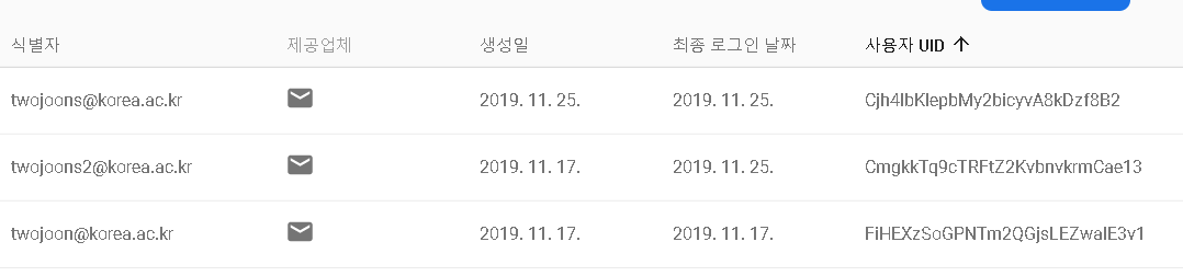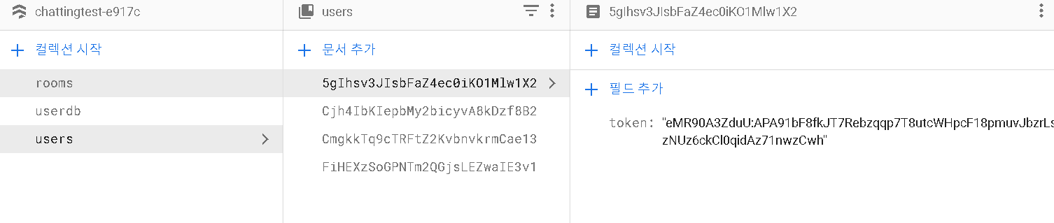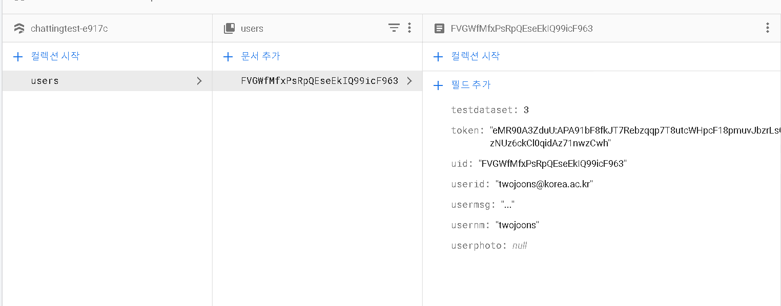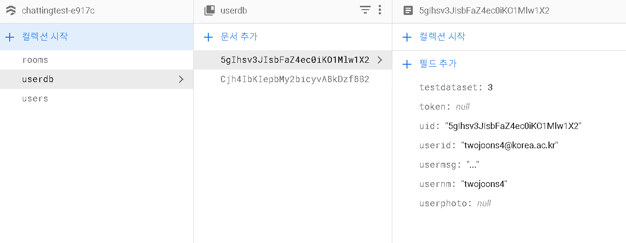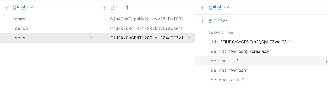 파이어베이스에서는 위의 정보가 제대로 들어와있지만