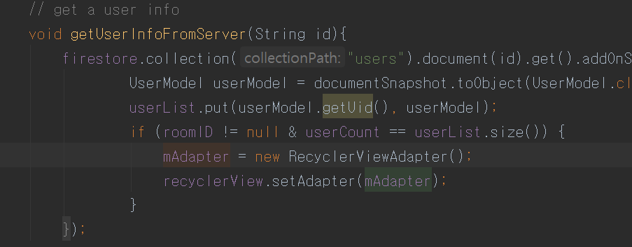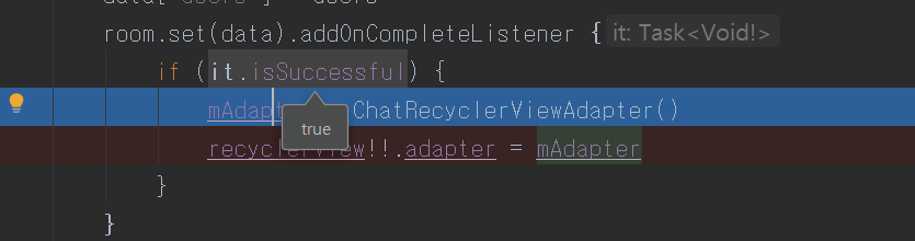room set은 true로 인식되나 아래 mAdapter가 문제이므로 이를 확인해보면,