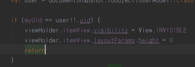 위와 같이 uid와 myuid 가 같아 버리면 애초부터 visibility가 invisible이 되어있음을 확인하였다.