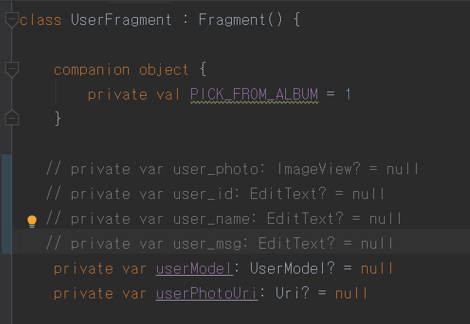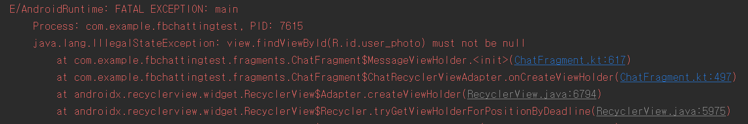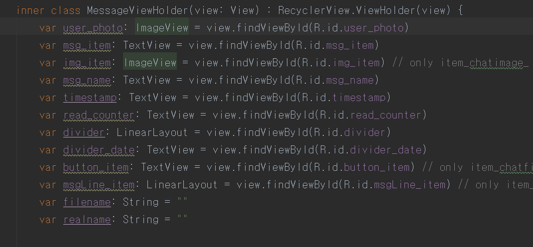 이는 뷰홀더 맴버변수의 널러블 처리가 제대로 안돼있어서 그렇다 상황은 아래와 같다.