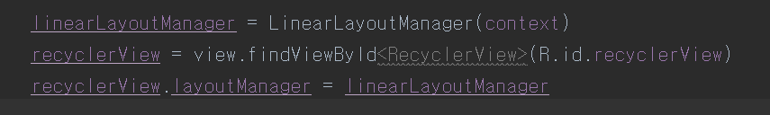 recyclerView를 lateinitvar로 선언하고 아래와 같이 코드 수정을 하였다.