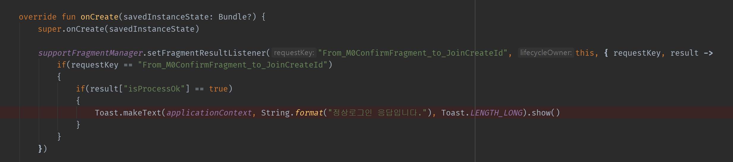 *번들에 대한 접근은 array element 접근과 같이 ["string"]을 사용함. requestKey는 String타입.