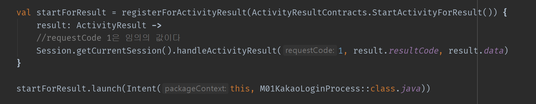 그 방법은 다음과 같습니다. 리스너를 정해주고(registerForActivityResult) 그 변수를 launch하는 방식입니다.