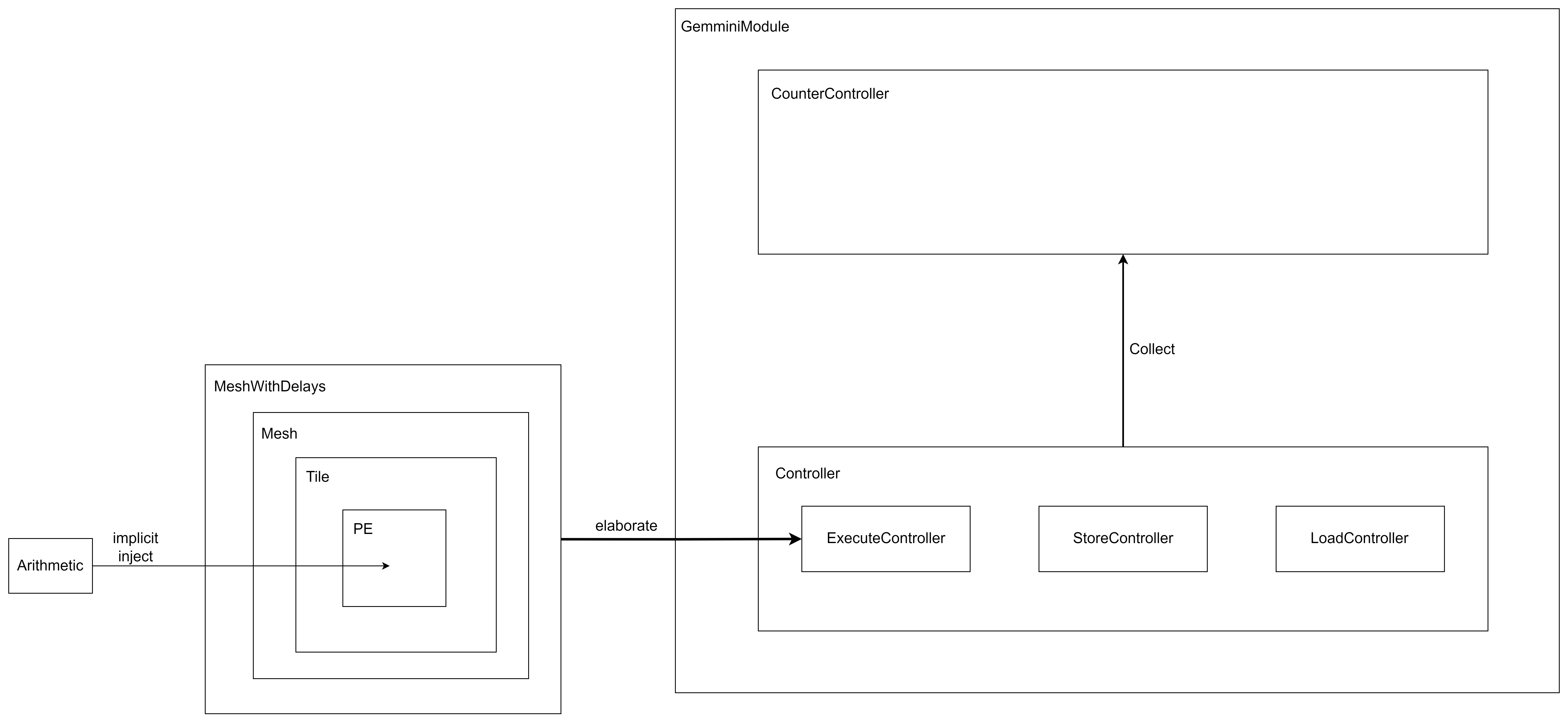 - Systolic array dimensions (tileRows, tileColumns, meshRows, meshColumns): The systolic array is composed of a 2-level hierarchy, in which each tile is fully combinational, while a mesh of tiles has pipeline registers between each tile