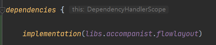 위의 library 를 toml에 추가하면, 아래와 같이 앱수준에서 accompanist - flowlayout이 libs.accompanist.flowlayout로 변환된다.
