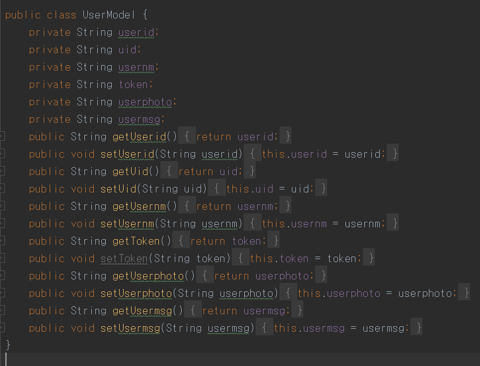 코드를 보았더니 위와 같다. 이는 코틀린의 Dataclass로 접근자 get, set을 정의할 수 있으므로 아래와 같이 바꾸어주었다.