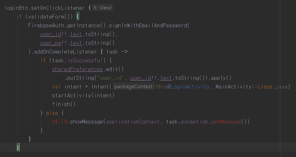 위는 사인업 버튼 이벤트 콜벡 부분을 코틀린으로 바꾼 것이다.