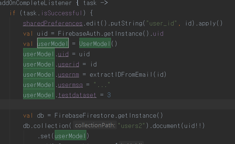 아무튼, signInWithEmailAndPassword 메소드가 요구하는건 패스워드와 이메일인데, dbPath가 다르더라도 인증란에 등록된 애는 하나로 관리 되도록 되어있다. db를 따로 만든 것은 아마 UID를 통해 db로 접근하는 구조로 만들기 위해서 인것 같다.