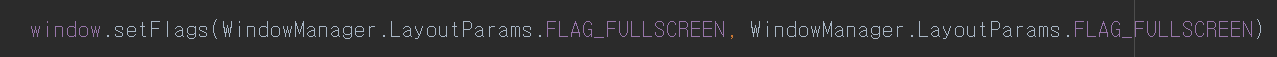 window.setFlags(WindowManager.LayoutParams.FLAG_FULLSCREEN, WindowManager.LayoutParams.FLAG_FULLSCREEN)