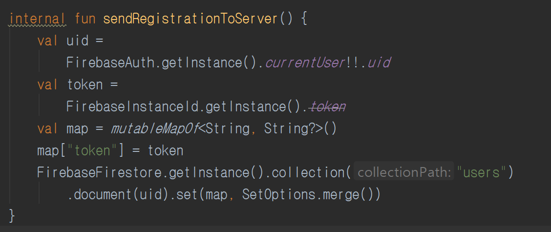 이 부분은 파이어 베이스의 스토어를 사용하기위한 인스턴스를 생성하고 초기화하는 부분인 것같다. 앱의 시작시 정의해 주면되겠다.