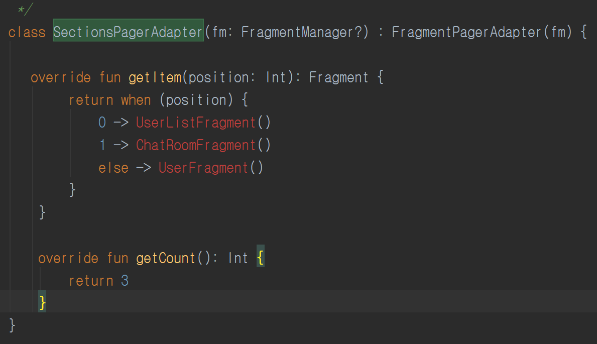 SelectionPagerAdapter 에서 자동변환시 getCount가 이상하게 나왔기에 아래와 같이 수정하였다.