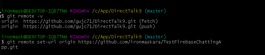 이를 아래와 같이 git remote set-url origin [내 레포지토리 주소] 로 바꾸어줄 수 있다.