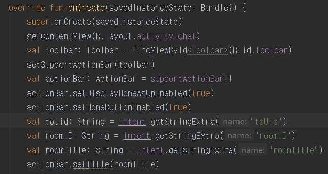ChatActivity에서 아래와 같이 되어있는 부분을