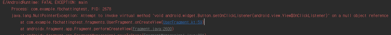 이는 onCreatedView 생성시 버튼 id를 찾을 시간이 확보되지않아 발생하는 문제이므로