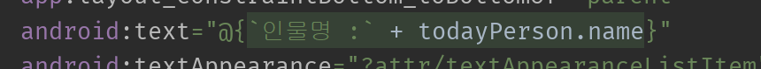Android Dev Android Databinding 시 Data Concatenation 방법 (다른 hard code 와 함께 인자를 호출 하는 등) YoonHyeonJoon 2021. 5. 6. 01:37 stackoverflow.com/questions/38978499/how-do-i-use-databinding-to-combine-a-string-from-resources-with-a-dynamic-varia How do I use databinding to combine a string from resources with a dynamic variable in XML? I have a TextView which has a hardcoded string and I have a dynamic variable that I want to put at the end of this string. This is my code: stackoverflow.com 위를 참조하면 된다. 제일 간단한 버전은 아래 처럼 쓰는 것이다 저작자표시 (새창열림)